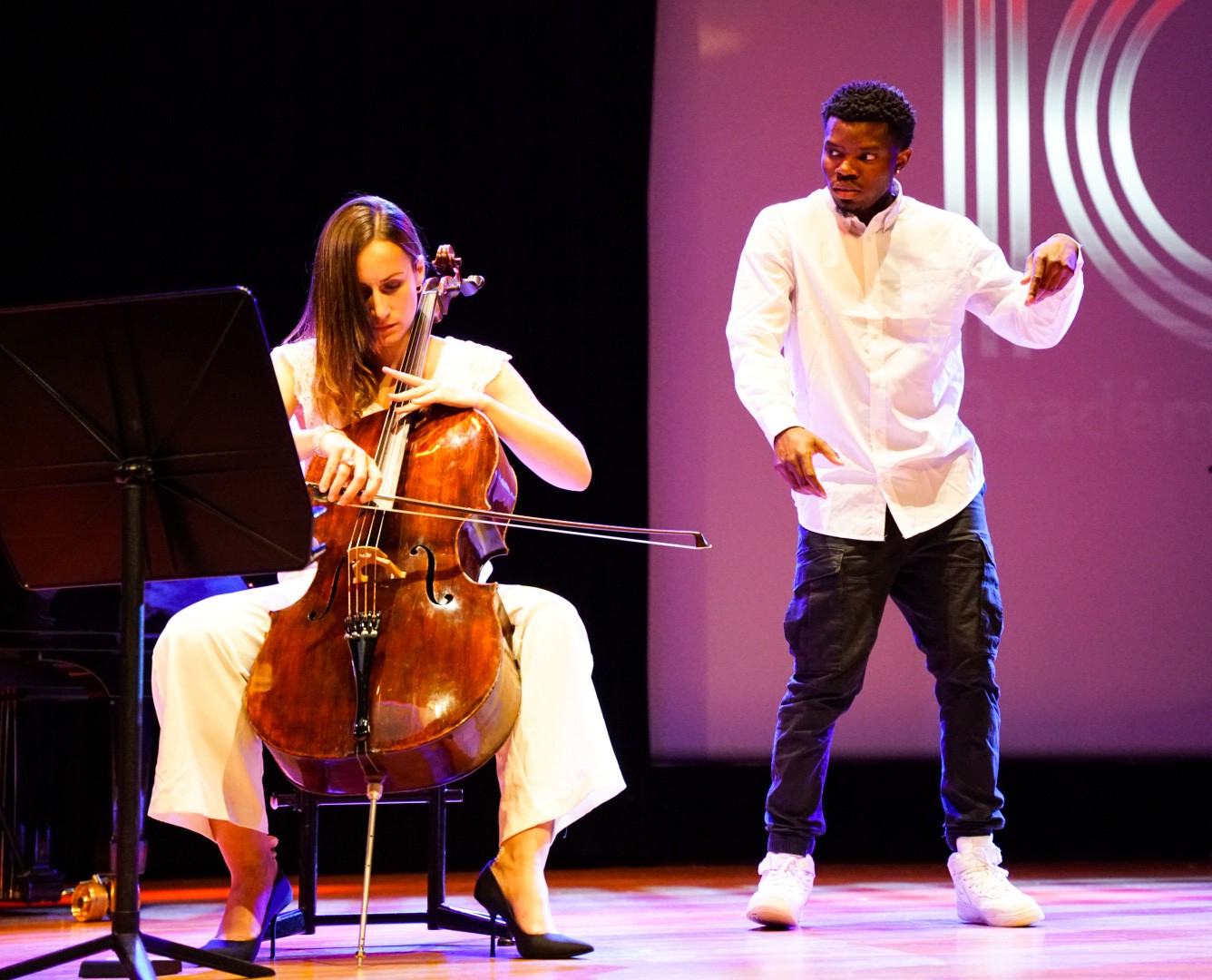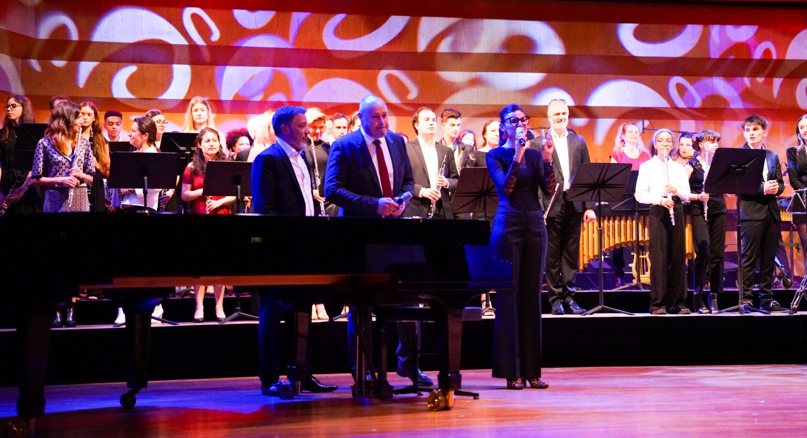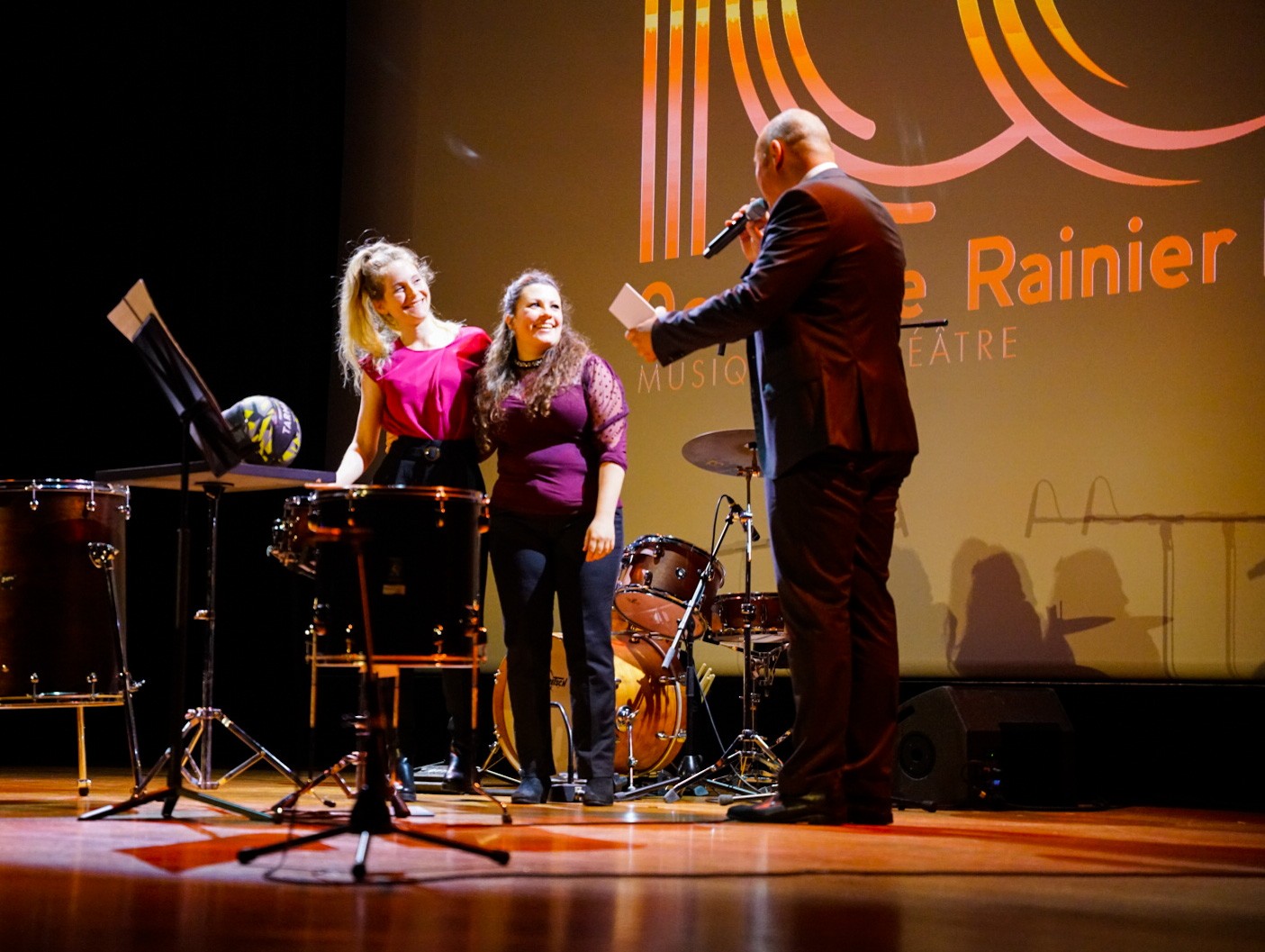 In the presence of Mélanie-Antoinette Costello de Massy, H.E. Yvette Lambin-Berti, Secretary of State, members of the Conseil Communal and numerous representatives of the Principality's highest authorities, former students performed on stage at the Auditorium Rainier III.